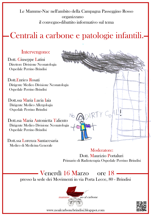 Convegno-dibattito informativo organizzato dal movimento No al carbone e le Mamme-nac, nell'ambito della campagna Passeggino Rosso.